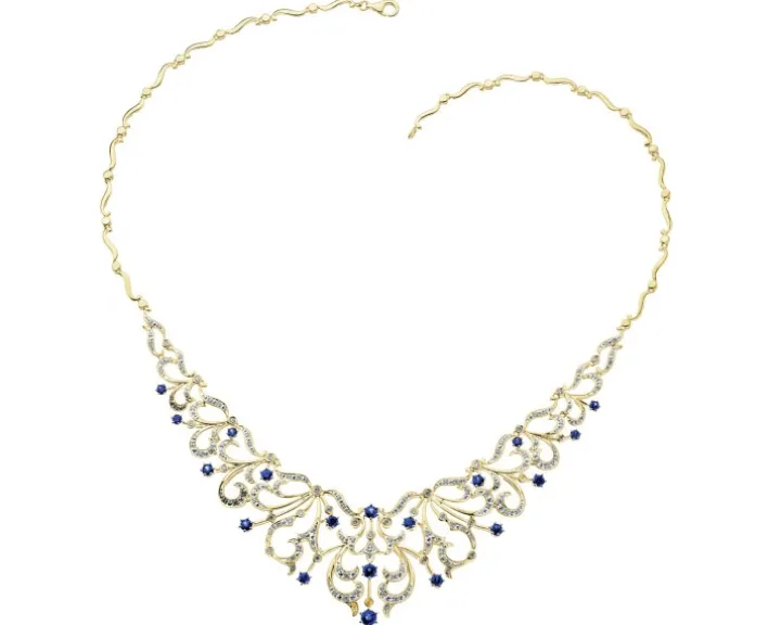 Naszyjnik z żółtego złota z brylantami i szafirami – 43 cm – próba 585
