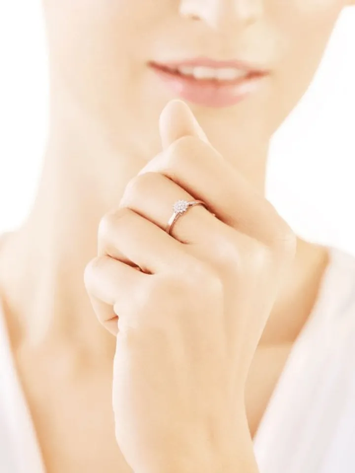 Chwila zaręczyn przypieczętowana zwielokrotnionym blaskiem diamentów. Aż dziewiętnaście maleńkich kamieni o brylantowym szlifie tworzy misterną rozetę, która zdobi szykowny pierścionek. Perfekcyjna kompozycja, dystynkcja i chłodna elegancja białego złota, czynią z niego doskonały, zaręczynowy symbol.