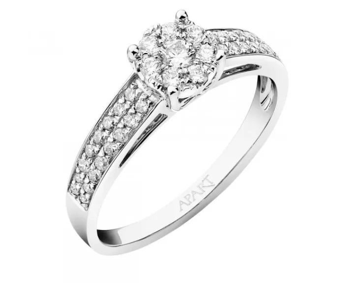 W stylu ikony kina. Wytworną urodę pierścionek zawdzięcza idealnemu duetowi białego złota oraz spektakularnej kompozycji czterdziestu diamentów o brylantowym szlifie, które w widowiskowy sposób go rozświetlają. To hołd dla wspaniałości największych gwiazd kina, a jednocześnie specjalny, jubileuszowy wzór z okazji 40-lecia marki Apart. Pierścionek dostępny jest również w kolekcji Hollywood w wersji wykonanej z żółtego złota.