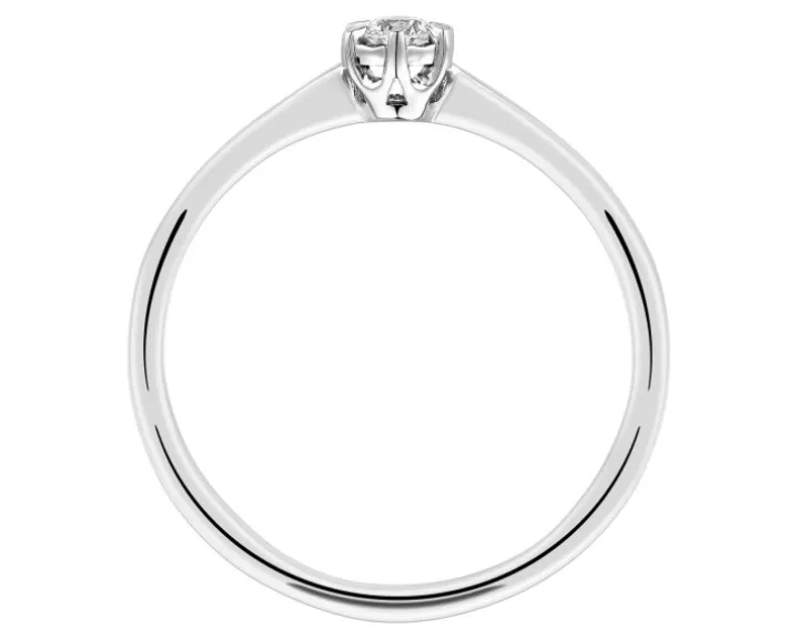 Wyjątkowo subtelny pierścionek zaręczynowy z brylantami. Klasyczny pierścionek z białego złota ma dyskretnie elegancką formę, rozświetloną blaskiem brylantu w oprawie 6 krap, dzięki którym szlachetny kamień jest stabilnie przytrzymywany, a jednocześnie może swobodnie lśnić. Pierścionek zaręczynowy z brylantem to idealny wybór dla każdej kobiety. Brylant to ponadczasowy kamień symbolizujący trwałość i nieskończoność miłości.