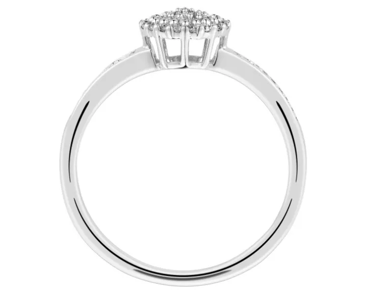 Elegancki złoty pierścionek z diamentami. Klasyczna forma z białego złota idealnie koresponduje z blaskiem kunsztownie oprawionych diamentów, tworzących piękną, misternie wykonaną kompozycję lśnienia. Szykowny pierścionek z diamentami wspaniale sprawdzi się jako pierścionek zaręczynowy dla wielbicielki dyskretnych refleksów białego złota i diamentów. Wzór dostępny również w żółtym złocie.