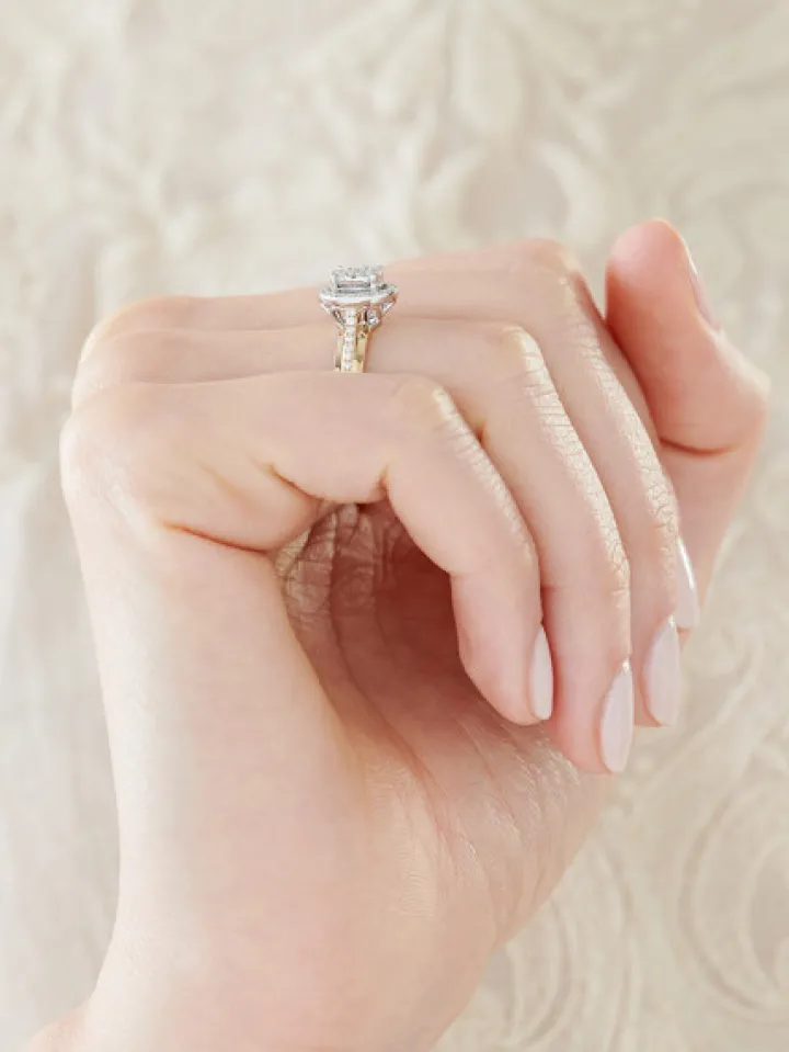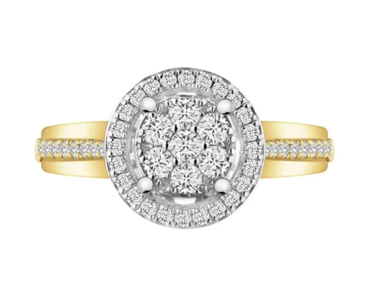 Elegancki i pełen finezji złoty pierścionek z brylantami. Pierścionek z żółtego i białego złota zachwyci wiele kobiet wyjątkowym pięknem i intensywnym blaskiem precyzyjnie oprawionych brylantów. Wykwintny, subtelnie nawiązujący do stylu vintage wzór będzie doskonałym wyborem jako pierścionek zaręczynowy z brylantami.