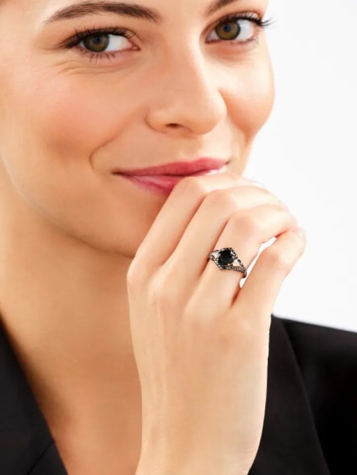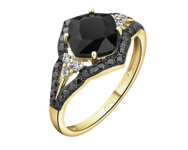 - Diament czarny – Kształt/Szlif: Brylant, 38 szt. o łącznej masie 0,29 ct, Czystość / Barwa: —/czarna poprawiana,