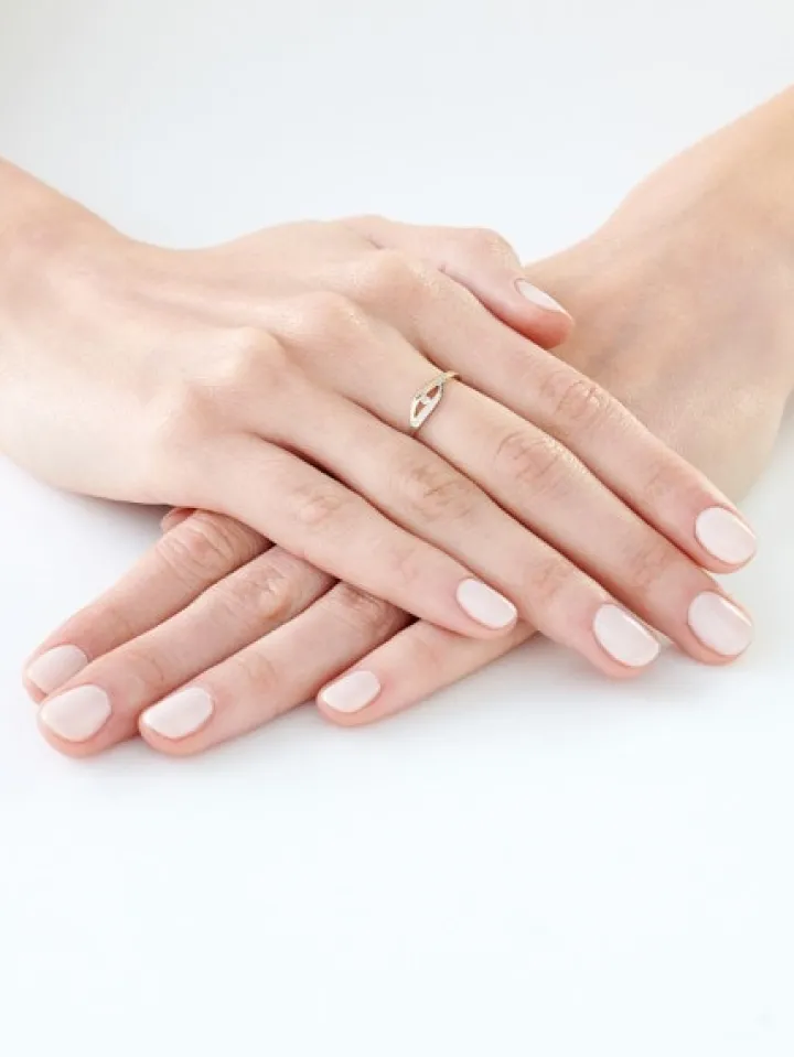 Minimalistyczny w formie i bogaty w treści pierścionek z żółtego złota, którego szyna obejmuje z obu stron iskrzący się brylant. Przywołuje na myśl objęcie ramionami ukochanej osoby, jako początek jasnej i świetlistej wspólnej drogi przez życie.