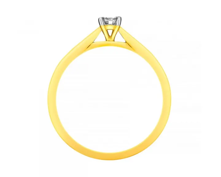 Chwila zaręczyn przypieczętowana diamentowym blaskiem. Delikatny pierścionek zaręczynowy z żółtego złota , ozdobiony lśniącym diamentem o brylantowych szlifach. Klasyczna forma pierścionka oraz oprawiony w cztery krapy kamień tworzą romantyczny wzór, który wyjątkowo podkreśli magię momentu zaręczyn.