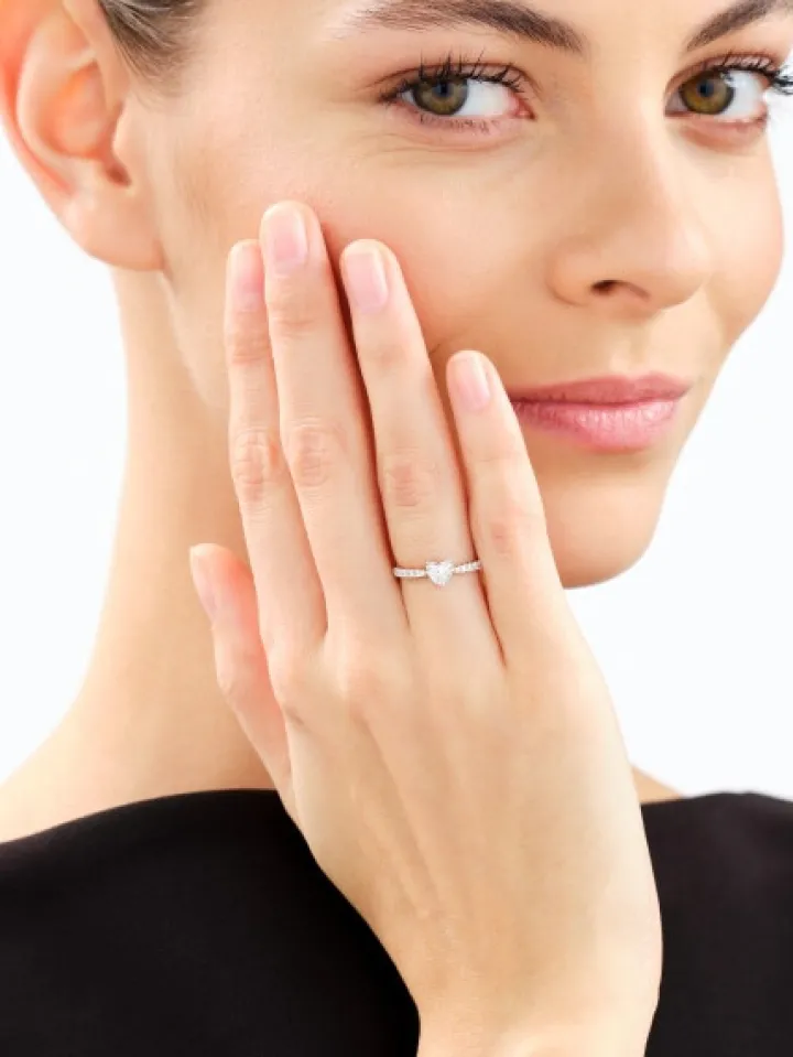 - Diament laboratoryjny – Kształt/Szlif: Serce, 1 szt. o masie 0,52 ct, Czystość / Barwa: VS1-VS2/F-G,
