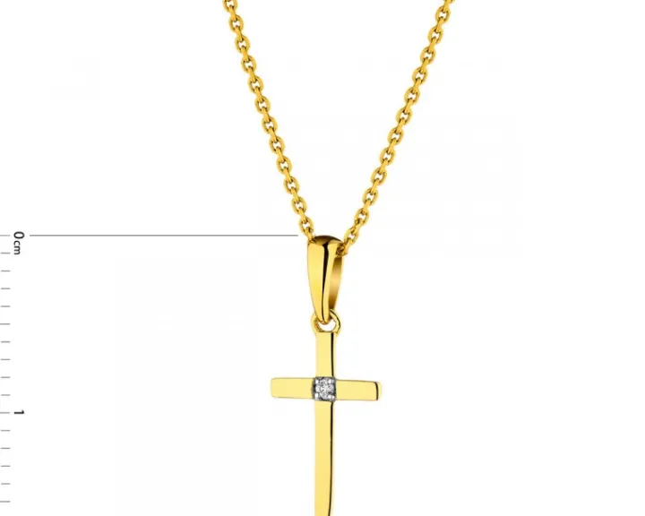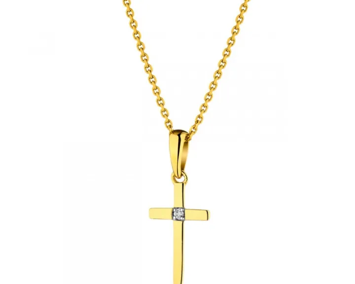 Delikatna zawieszka w kształcie klasycznego krzyża z 14-karatowego złota, w której w miejscu przecięcia się jego ramion umieszczono brylant. Subtelny, a jednocześnie bardzo wymowny upominek z okazji bierzmowania czy Pierwszej Komunii Świętej.