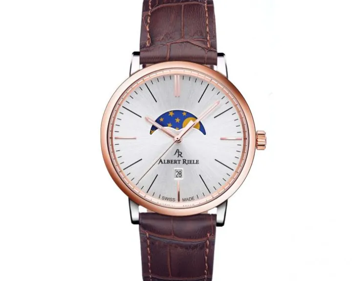 Cechy: zegarek szwajcarski, datownik, wskazówkowy, sekundnik, wskaźnik faz Księżyca