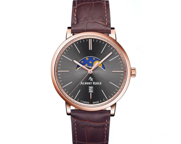 Cechy: zegarek szwajcarski, datownik, wskazówkowy, sekundnik, wskaźnik faz Księżyca