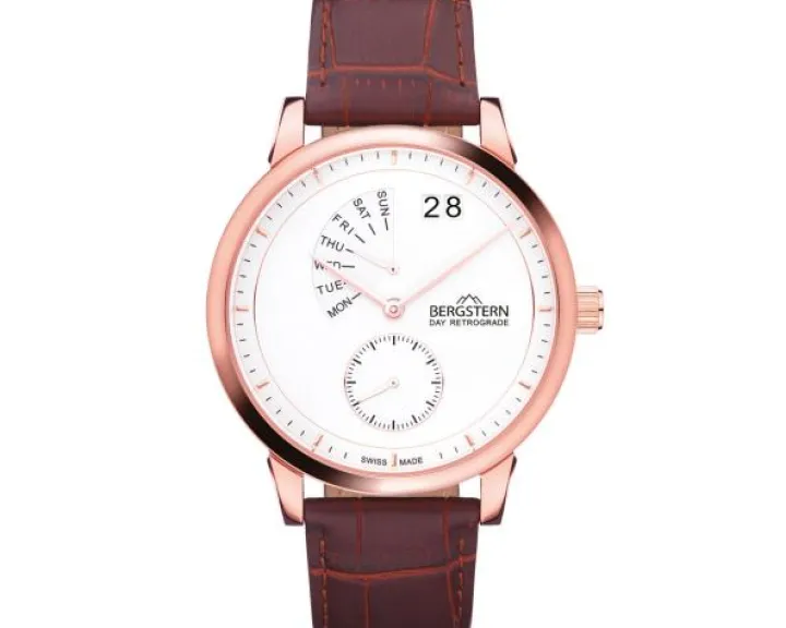 Cechy: zegarek szwajcarski, datownik, wskazówkowy, mały sekundnik, wskaźnik dnia tygodnia, wskaźnik zużycia baterii