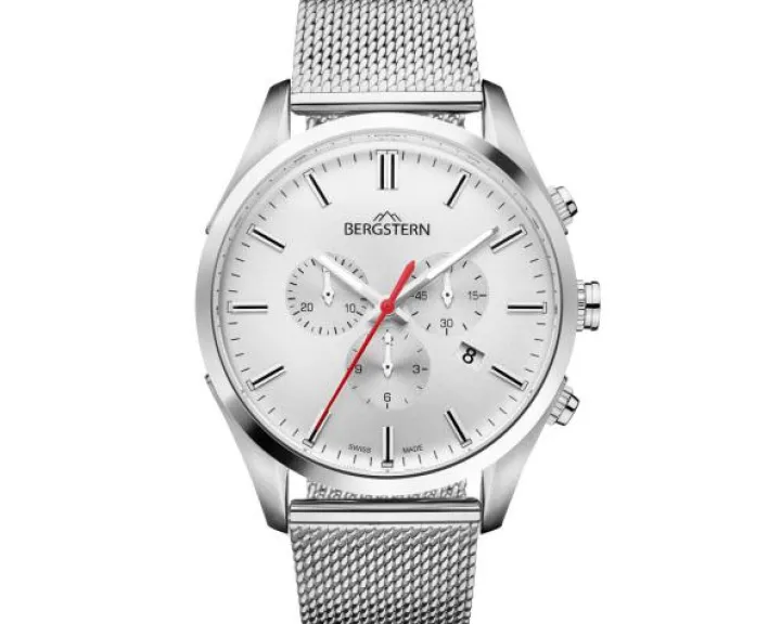 Cechy: zegarek szwajcarski, chronograf, datownik, wskazówkowy, mały sekundnik