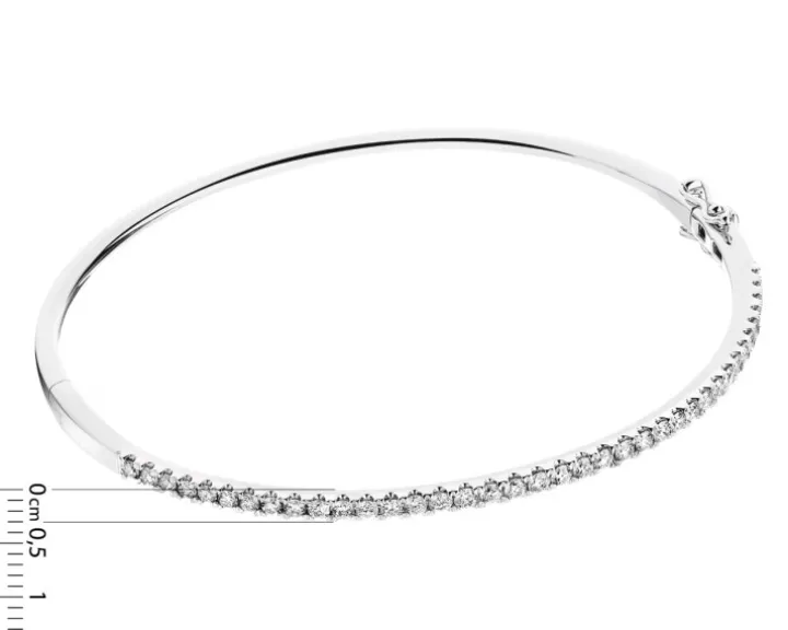Do zdobienia wykorzystanio 38 diamentów o łącznej masie 1,00 ct. Kamienie w szlifie brylantowym zostały precyzyjnie osadzone na górnej części bransoletki, tworząc przepiękny efekt lśnienia, który emanuje luksusem. Ich subtelny, ale wyraźny blask idealnie kontrastuje z chłodnym odcieniem białego złota, tworząc harmonijną i elegancką kompozycję.