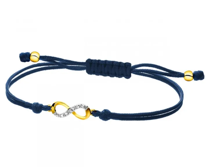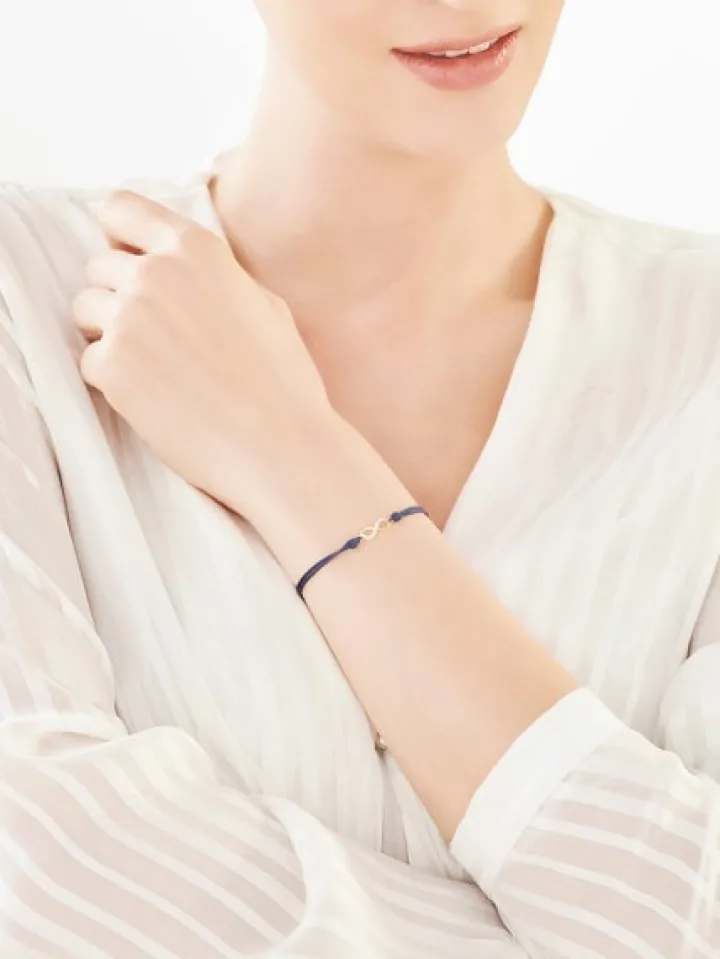 Kolekcjonuj radosne chwile! Delikatna bransoletka, ozdobiona miękkimi liniami złotego symbolu nieskończoności, pozwoli zatrzymać w pamięci szczęśliwe momenty, a diament uwieczni towarzyszące im emocje. Wyjątkowy charakter tej bransoletki podkreśla barwny regulowany sznureczek. Biżuteria ta doskonale współgra z innymi wzorami z kolekcji Fun Fun.