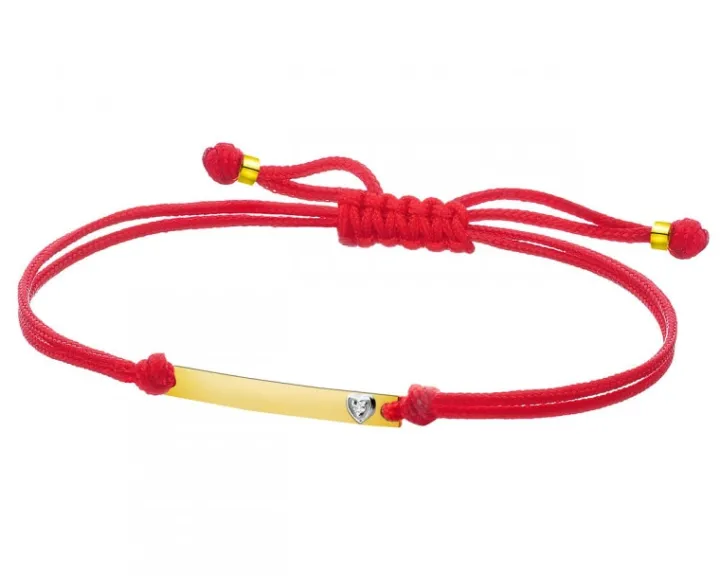 Kolekcjonuj radosne chwile! Ulotna, a jednocześnie niezwykła bransoletka z pełnym prostoty złotym elementem, ozdobionym diamentem zamkniętym w kształcie maleńkiego serduszka. Soczysta czerwień dodaje jej uroku, a także sprawia, że wzór nabiera wymownego charakteru. Doskonale sprawdzi się jako upominek dla szczególnie bliskiej osoby.