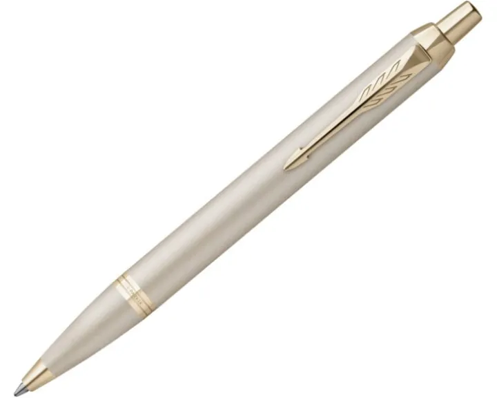 Długopis Parker IM Monochrome, niebieski tusz, wykończenie w kolorze szampańskim, końcówka medium, opakowanie podarunkowe.