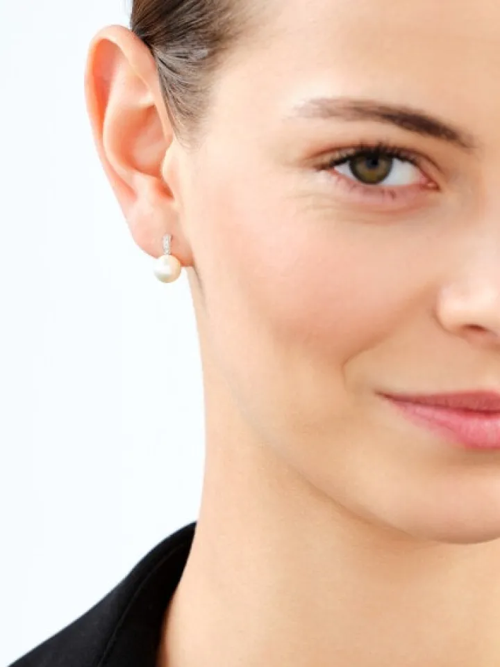 Kolczyki z białego złota z diamentami i perłami – próba 585