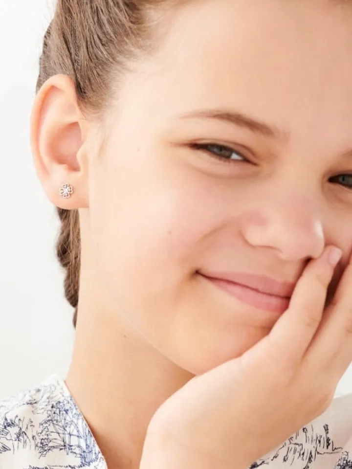 Kolczyki z białego złota z diamentami – koniczyny – 0,02 ct – próba 375