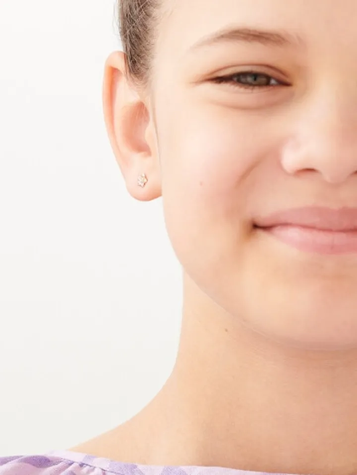 Kolczyki z różowego złota z diamentami – kwiaty – 0,008 ct – próba 375