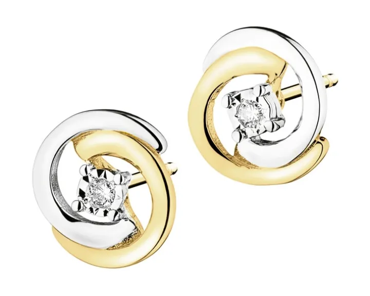 Kolczyki z żółtego i białego złota z brylantami – 0,02 ct – próba 585