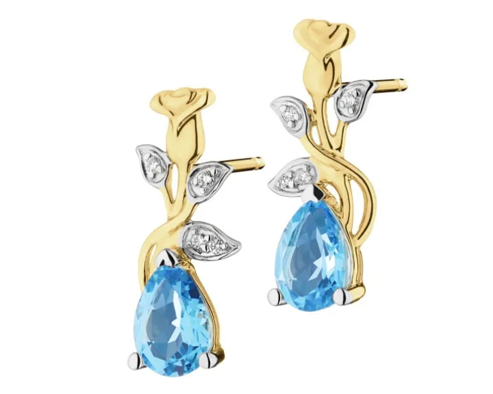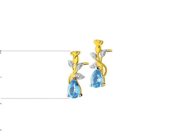 Kolczyki z żółtego złota z diamentami, kamieniami szlachetnymi i ozdobnymi – próba 585