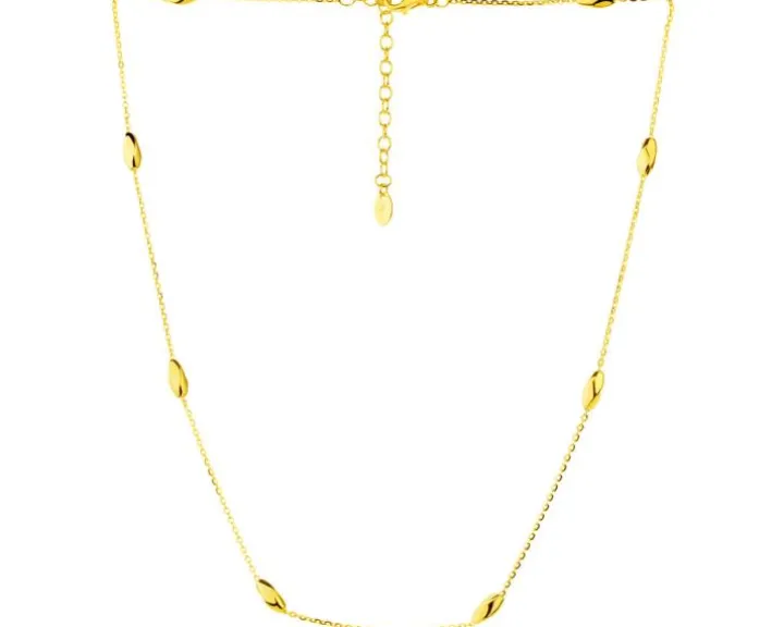 Srebrny pozłacany naszyjnik z połyskującymi fasolkami. Zainspirowany najnowszymi trendami wzór ze srebra próby 925 spodoba się każdej kobiecie, która kocha modę. Nie bez znaczenia jest także fakt, że do bransoletki zaprojektowano efektowny naszyjnik ozdobiony elementami o organicznych formach. Komplet można połączyć z podobnymi wzorami wykonanymi ze srebra. Taki zestaw prezentuje się wielowymiarowo i ekstrawagancko, mimo pozornie minimalistycznego designu. To biżuteria doskonała do stylizacji monochromatycznych, bardziej awangardowych i w duchu szlachetnej prostoty. Uniwersalna, a przy tym przykuwająca uwagę nietuzinkowym spojrzeniem na design.
