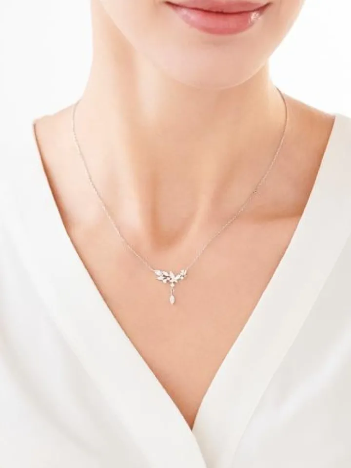 Czarujący urokiem i lśnieniem srebrny naszyjnik z motylami i cyrkoniami. Taki duet detali dekoracyjnych tworzy we wzorze pełną finezji i wdzięku kompozycję. Naszyjnik pięknie się prezentuje po założeniu i jest subtelną ozdobą kobiecego dekoltu, a dla wzmocnienia efektu warto założyć pasujące do kompletu kolczyki. Naszyjnik ze srebra próby 925 sprawdzi się do stylizacji na co dzień i na wyjątkowe okazje. Jego design to harmonijne połączenie delikatności i blasku białych cyrkonii o różnych kształtach. Bezpretensjonalny i jednocześnie wyrafinowany dodatek dla każdej kobiety, która uwielbia biżuterię w romantycznym wydaniu.
