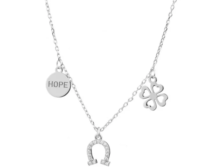 Naszyjnik srebrny z cyrkoniami – podkowa, koniczyna