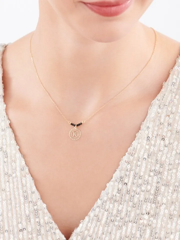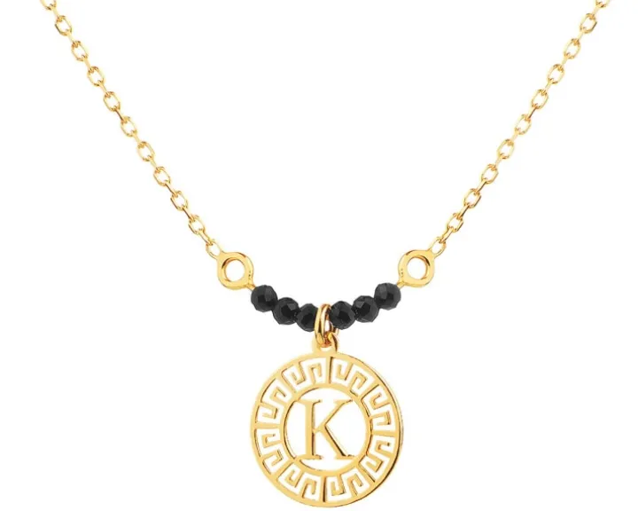 Naszyjnik srebrny ze szlifowanym szkłem – litera K, rozeta