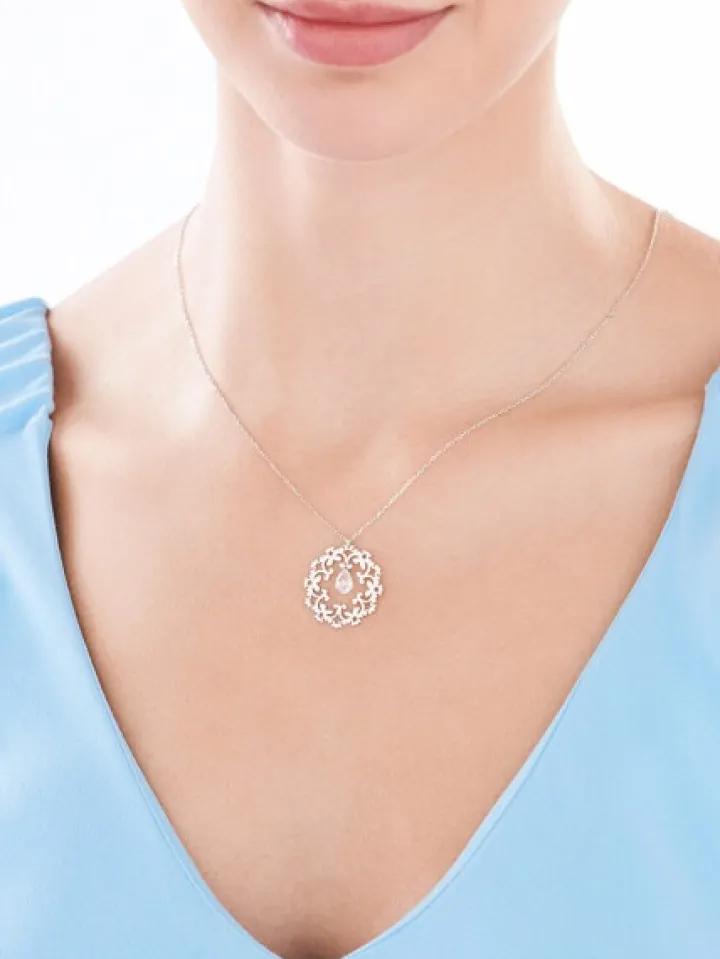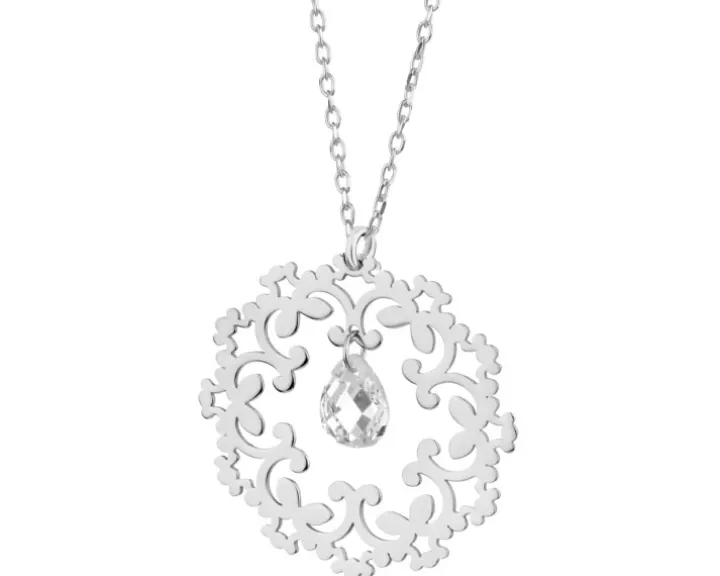 Naszyjnik srebrny ze szlifowanym szkłem – rozeta