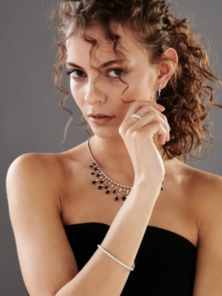 - Diament – Kształt/Szlif: Brylant, 107 szt. o łącznej masie 3,75 ct,