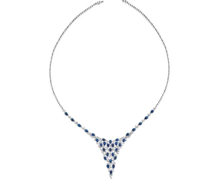 Naszyjnik z białego złota z brylantami i szafirami – próba 585