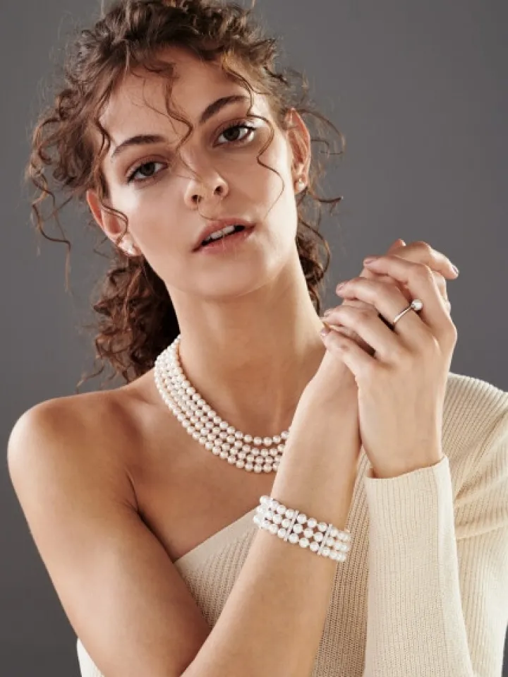 Naszyjnik z perłami, brylantami i elementami białego złota – próba 585