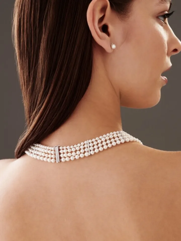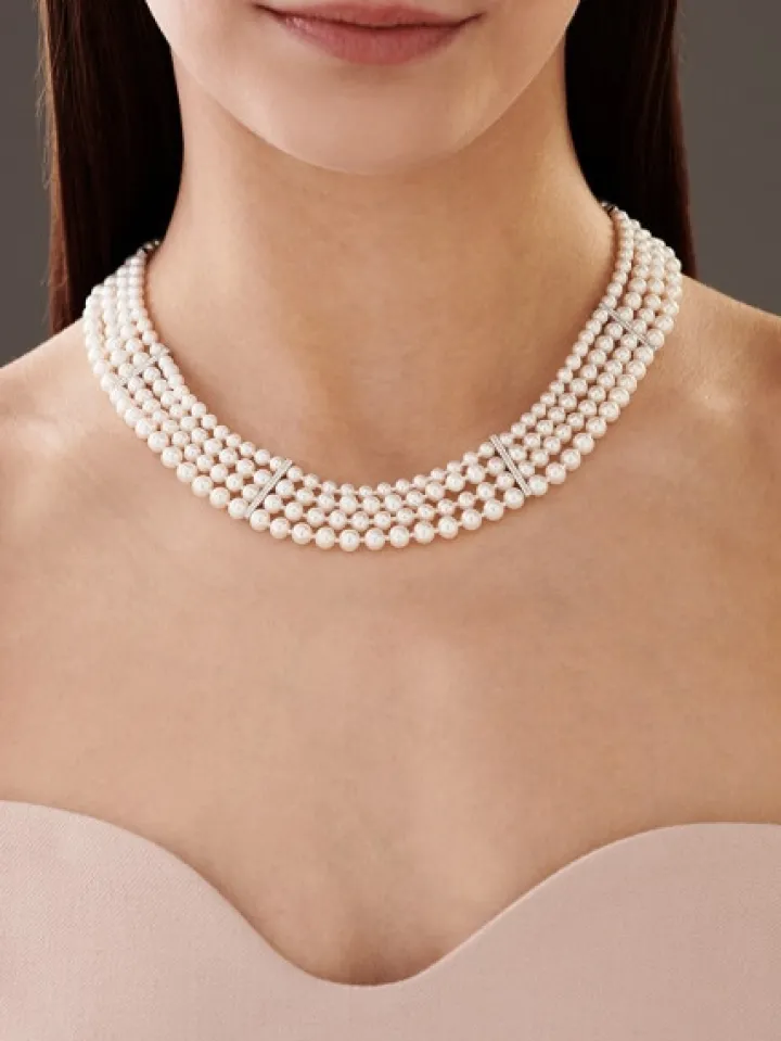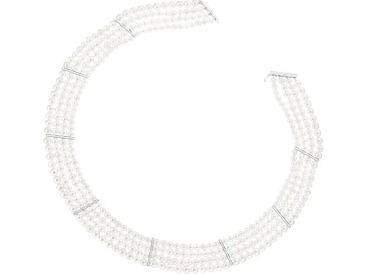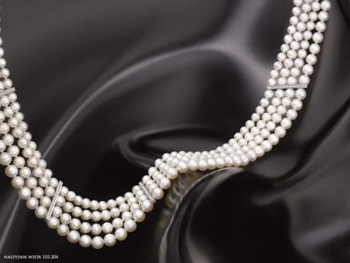 Naszyjnik z perłami, diamentami i elementami białego złota – próba 585
