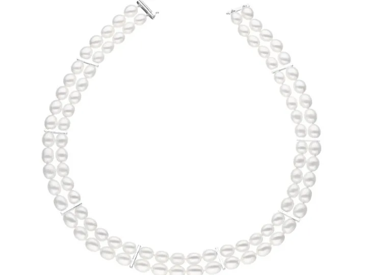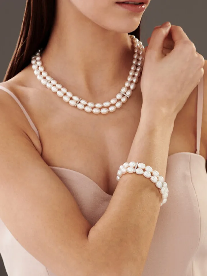 Naszyjnik z perłami, diamentami i elementami białego złota – próba 585