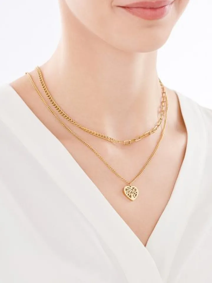 Naszyjnik ze stali szlachetnej – serce, drzewko