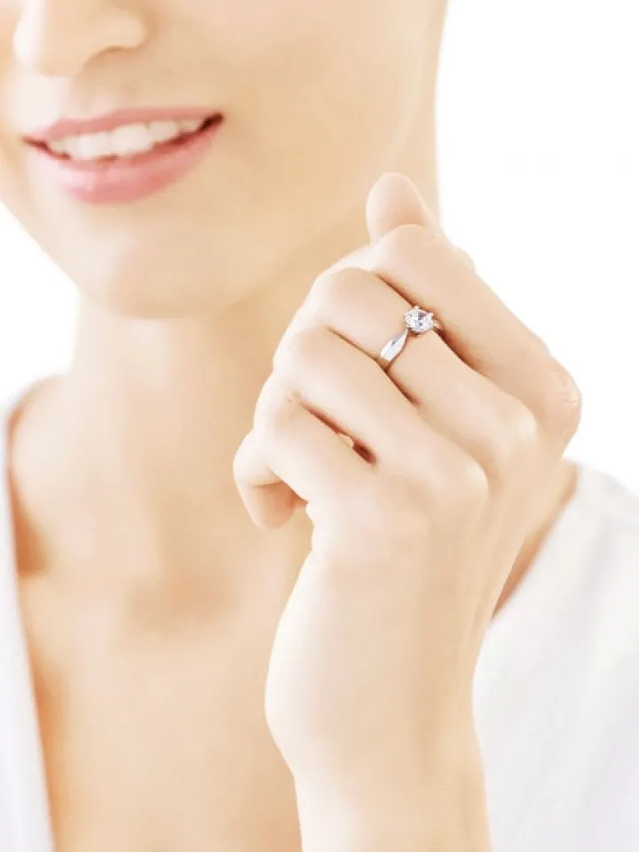 Pełen elegancji i blasku pierścionek ze srebra. Oszałamiający blask dużej cyrkonii w oprawie sześciu krap to zasługa doskonałych, precyzyjnie wykonanych szlifów kamienia, który ujęty w klasyczną formę, w pełni prezentuje nieskazitelne piękno i blask.