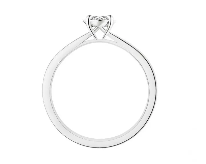 Brylantowy pierścionek z białego złota. Specjalna oprawa kamienia z wykorzystaniem pokrytego fasetkami detalu, umieszczonego poniżej brylantu sprawia, że jego blask jest spotęgowany. Intensywnie lśniący wzór to doskonały wybór jako pierścionek zaręczynowy z brylantem.