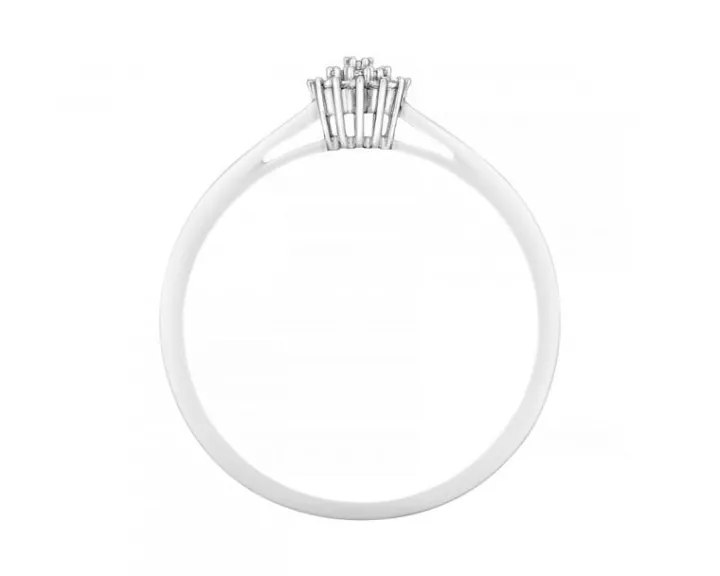 Chwila zaręczyn przypieczętowana zwielokrotnionym blaskiem diamentów. Aż dziewiętnaście maleńkich diamentów tworzy misterną kompozycję, która zdobi klasycznie piękny pierścionek. Perfekcja wykonania, dystynkcja i chłodna elegancja białego złota, czynią z niego doskonały, zaręczynowy symbol.