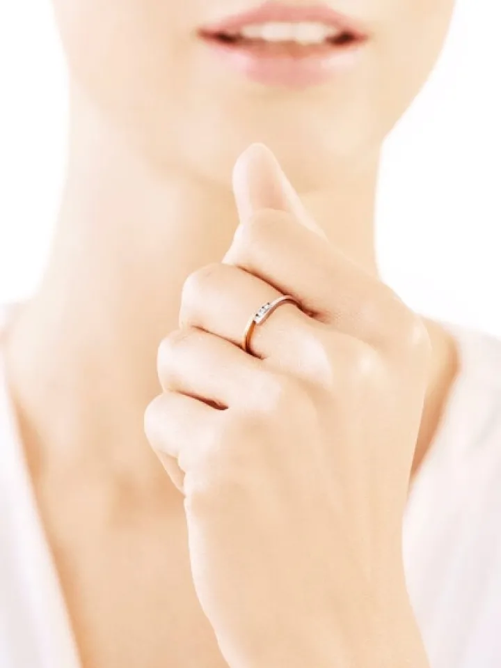 Chwila zaręczyn przypieczętowana diamentowym blaskiem. Wymarzony kamień zaręczynowy, czyli diament ozdobiony brylantowymi szlifami, olśniewa w pierścionku zaręczynowym potrójnym blaskiem. W subtelnych objęciach klasycznego złota, dopełnionego białym kruszcem, zamknięto trzy rozmigotane brylanty.