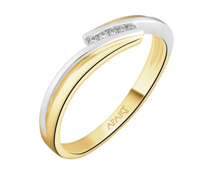 Chwila zaręczyn przypieczętowana diamentowym blaskiem. Pięć diamentów o brylantowym szlifie zamknięto w rozchylającej się szynie z klasycznego złota. W nieco mniej tradycyjnej odsłonie pierścionka zaręczynowego blask najbardziej upragnionych kamieni podkreślono dodatkowo łagodnością rodowanych linii.