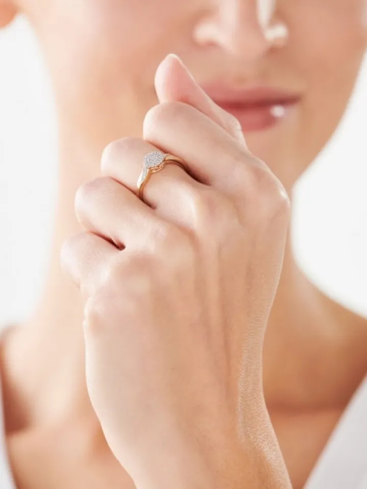 Zachwycający blaskiem pierścionek z diamentami. Pierścionek z żółtego złota ma klasyczny styl, a o wyjątkowej wytworności wzoru decyduje kunszt i precyzja, z jaką oprawiono 43 diamenty. Złoty pierścionek łączy elegancję formy ze szlachetnością refleksów diamentów. Wzór z pewnością olśni jako pierścionek zaręczynowy lub prezent z okazji ważnej rocznicy.