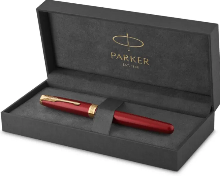 PARKER Sonnet pióro kulkowe Red Lacquer GT, głęboki czerwony werniks z wykończeniami ze złota, końcówka fine, opakowanie prezentowe