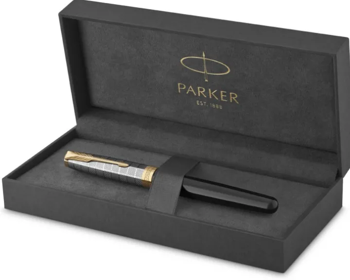 Wyraź prawdziwe piękno pisząc nieskazitelnym i wyrafinowanym piórem wiecznym PARKER Sonnet. Złożone z 17 elementów, posiada korpus i nasadkę pokryte matowym, czarnym lakierem z klipem i pierścieniami wykończonymi palladem. Starannie, ręcznie składane i dokładnie sprawdzane, by zapewnić najwyższą jakość – cechuje je doskonała precyzja i wyjątkowy komfort pisania. Dostępny w asortymencie wykończeń, w tym z niezapomnianym wzorem Ciselé, Sonnet to prawdziwe dzieło i symbol kunsztu marki Parker. By nieść wyrafinowany styl w każdych okolicznościach, Sonnet oferowany jest w opakowaniu prezentowym PARKER premium.