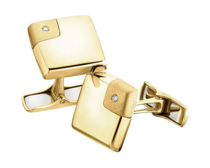 Spinki do mankietów w żółtym złocie z brylantami – 0,02 ct – próba 585