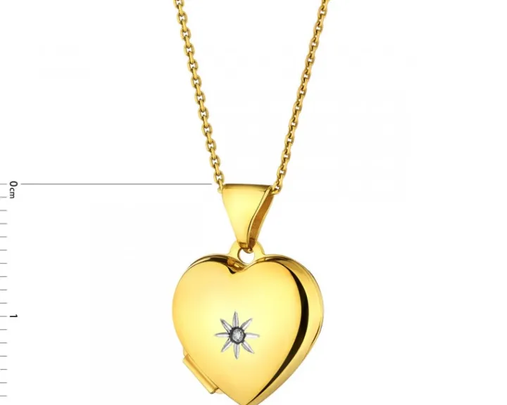 Połyskujące diamentami złote puzderko w kształcie serca. Wykonane z żółtego złota puzderko można dodatkowo ozdobić grawerunkiem, a w jego wnętrzu umieścić zdjęcia rodzinne. Dzięki tak wyjątkowemu charakterowi, puzderko będzie idealnym upominkiem na wiele okazji, takich jak choćby Dzień Matki czy Walentynki.