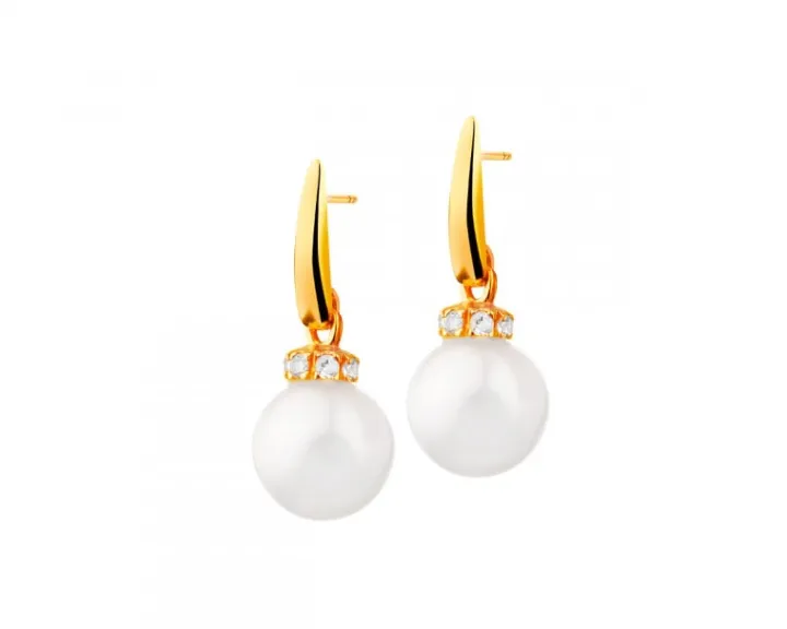Złote kolczyki z perłami i cyrkoniami