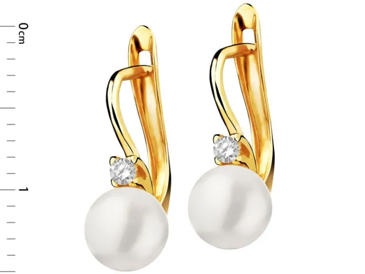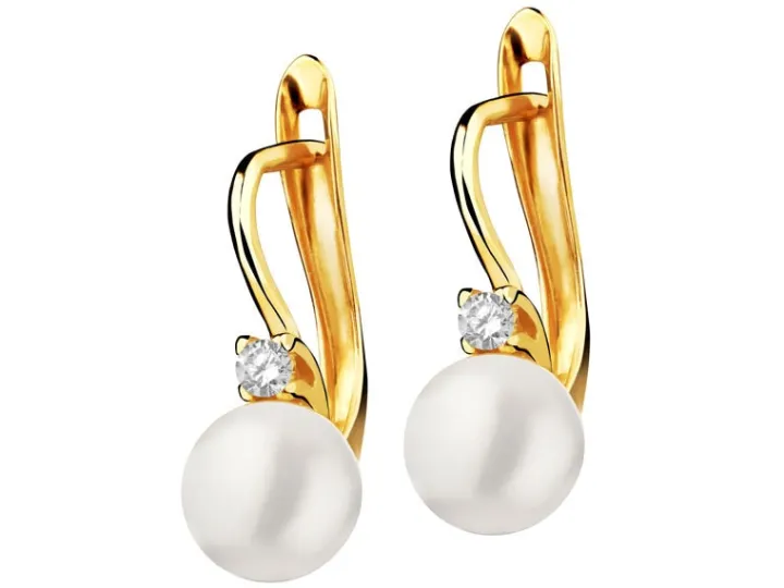 Złote kolczyki z perłami i cyrkoniami
