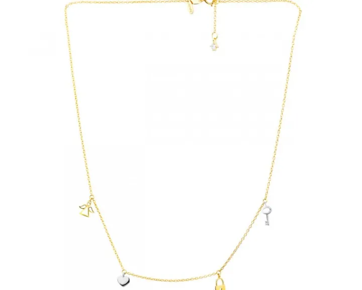 Złoty naszyjnik – aniołek, serce, kłódka, kluczyk