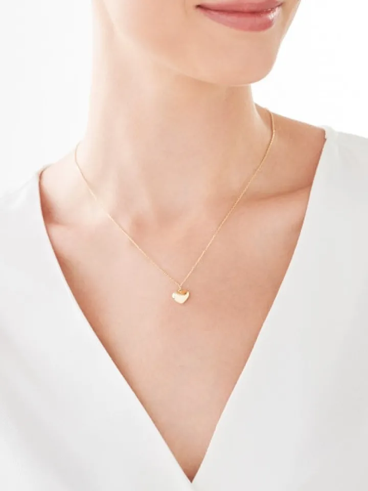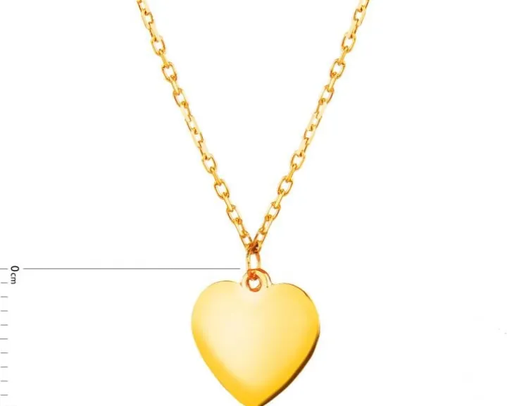 Delikatny złoty naszyjnik z sercem. Romantyczny symbol miłości, w kształcie którego wykonano zawieszkę naszyjnika podkreślają ciepłe refleksy żółtego złota, rozświetlające także subtelny splot łańcuszka. Naszyjnik będzie pięknym prezentem na różne okazje, a także uniwersalnym dodatkiem biżuteryjnym do każdej stylizacji.