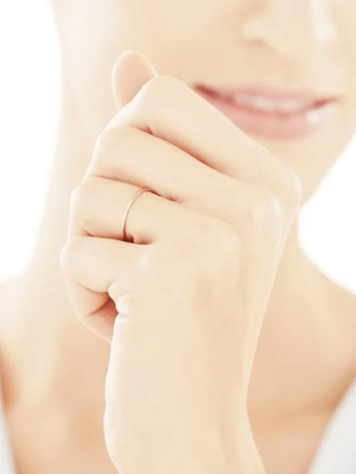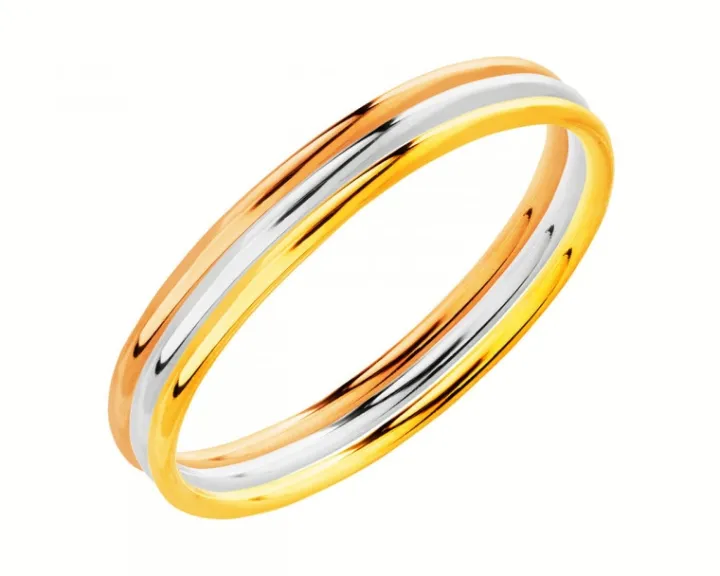 Pierścionek z różowego złota o minimalistycznym kształcie wąskiej obrączki. Wzór dostępny jest także w wersjach z białego oraz żółtego złota, z którymi łączy się w zestaw trzech pierścionków.